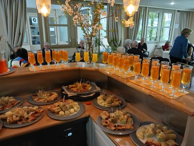 La plupart des résidents rentrent de leurs vacances de cet été ... et on fête cela comme il se doit autour d' un moment de convivialité : Cocktail Maison et petits fours concoctés par nos équipes. Le tout servi dans la bonne humeur .